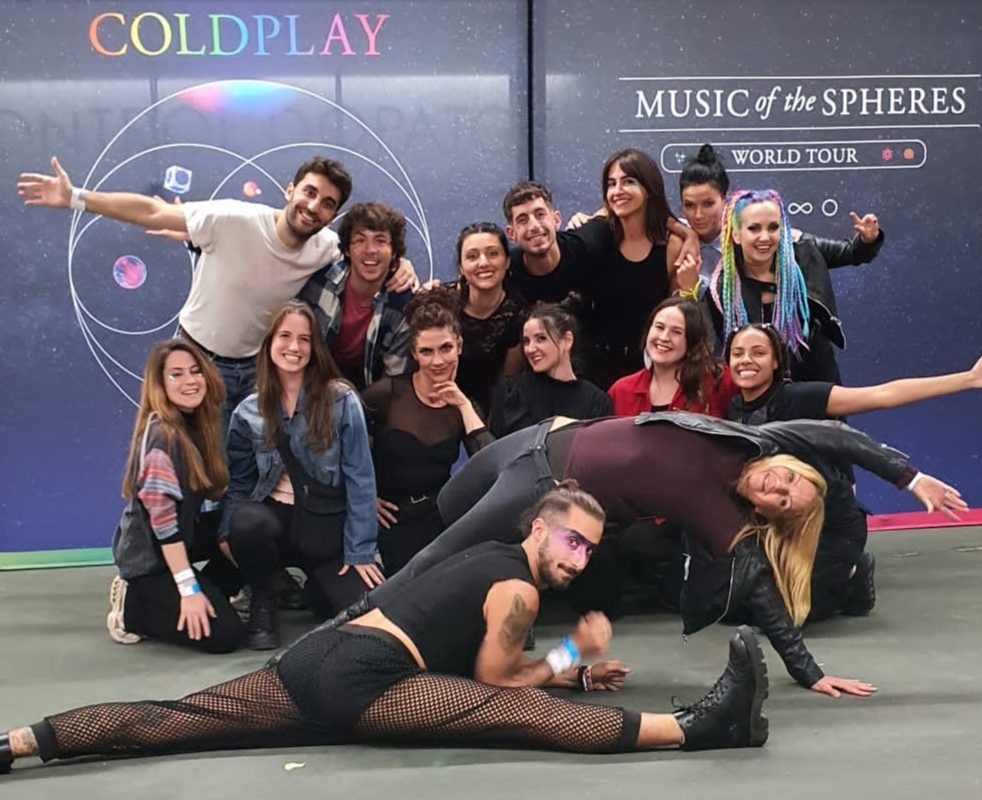Coreografías para cantantes, y performance en conciertos, aquí tienes uno de nuestros últimos trabajos para Coldplay, en su última gira por Barcelona, organizamos junto con 14 bailarines la puesta en escena final de los conciertos.
